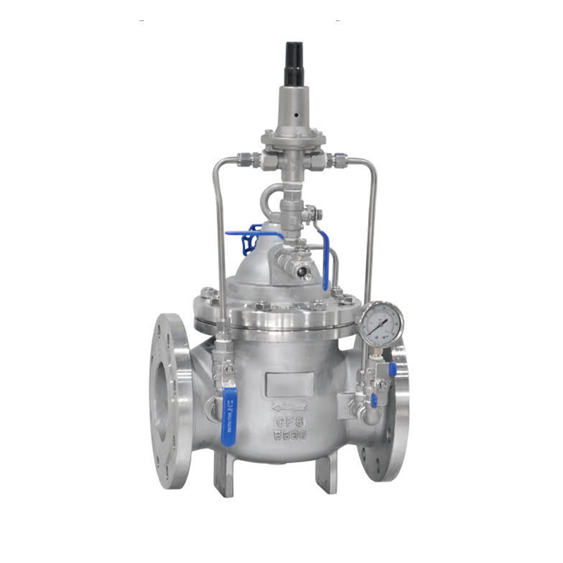 本閥在傳動(dòng)方式上采用了水力操作并能自動(dòng)控制。閥體采用了流線型設(shè)計(jì),內(nèi)部水頭損失小。該閥的主要特點(diǎn)是即可以作泄壓閥又可以作持壓閥。作泄壓閥時(shí)可將給水管中超過(guò)導(dǎo)閥安全設(shè)定值之壓力釋放,并維持管中壓力于安全設(shè)定值以下,以防止管中高壓或突圧毀損管線或設(shè)備,可用于高層大樓消防測(cè)試循環(huán)系統(tǒng)以及其它給水系統(tǒng)之泄壓用,以防止水壓過(guò)高造成系統(tǒng)危險(xiǎn),作持壓閥時(shí)可維持主閥上游供水壓力于某一設(shè)定值以上,以保障主閥上游供水區(qū)的壓力,該產(chǎn)品是用于供水系統(tǒng)理想產(chǎn)品,歡迎選購(gòu)。