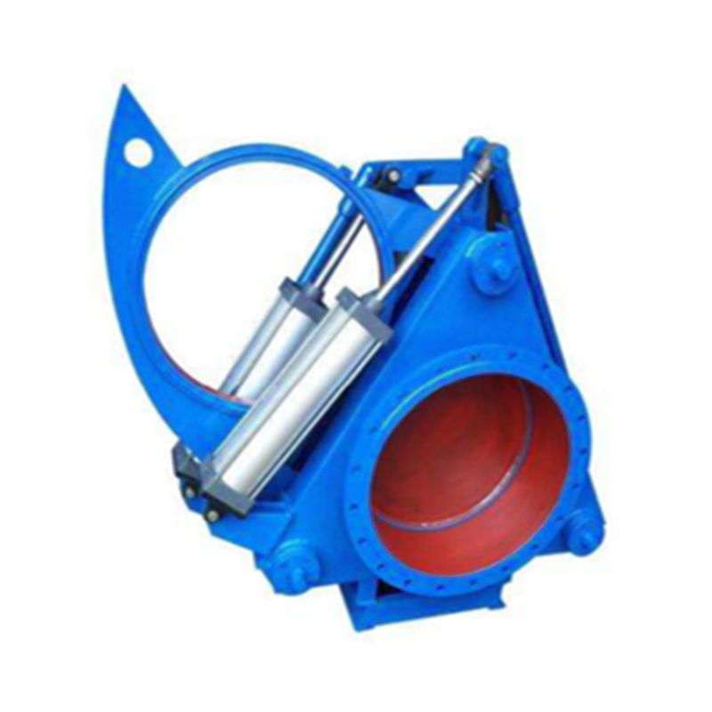 主要由左閥體、右閥體、絲桿、閘板、密封圈、杠桿、汽缸等零件組成,并由底座、支撐柱構成一個剛性結構體。閥門中設有夾緊、松開汽缸和翻板汽缸,夾緊、松開汽缸通過杠桿和絲桿螺旋驅動左、右閥體完成松開、夾緊動作,翻板汽缸驅動閘板完成開關動作。橡膠密封圈鑲鉗在閘板上,具有耐高溫、密封性能好、更換方便、使用壽命長等特點。